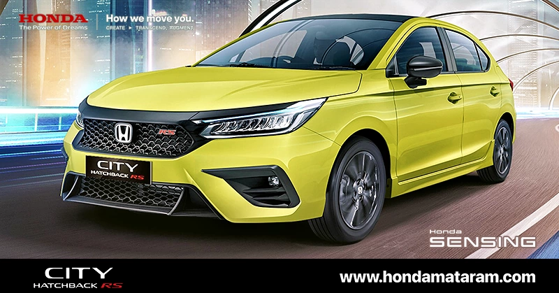 New Honda City Hatchback RS di Mataram Lombok NTB merupakan mobil sporty hatchback yang memiliki teknologi canggih dan pintar yang dapat terkoneksi dan mudah dicontrol dengan smartphone.